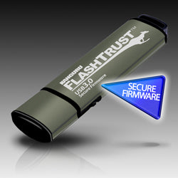 Für Unternehmen, die nicht auf dem Markt für High-End-Hardwareverschlüsselung sind, sich aber dennoch vor Malware-Manipulationen Dritter schützen möchten, hat Kanguru seine neueste unverschlüsselte Version eines sicheren RSA-2048-Firmware-USB-Flash-Laufwerks namens auf den Markt gebracht Kanguru FlashTrust im Jahr 2014. FlashTrust ist das weltweit erste unverschlüsselte USB-Laufwerk mit integrierter sicherer Firmware und bietet Unternehmen den gleichen Firmware-Schutz wie unsere vertrauenswürdigen hardwareverschlüsselten Geräte. Nach dem gleichen Prinzip würde ein Hacker eines Drittanbieters, wenn er versuchen würde, das USB-Laufwerk zu manipulieren, um Malware in ein Netzwerk einzuschleusen, dieses einfach herunterfahren, da dies durch einen Selbsttest beim Start regelmäßig überprüft wird eine perfekte Lösung für Endpoint Security-Umgebungen.