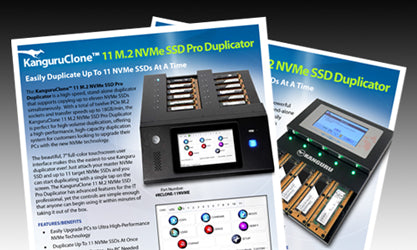 The KanguruClone Line of M.2 NVMe SSD Duplicators provide superb high speed, stand-alone duplication for high-performance PCIe M.2 SSDs. Easily upgrade your PCs to new PCIe NVMe technology with KanguruClone M.2 NVMe SSD Duplicators.
